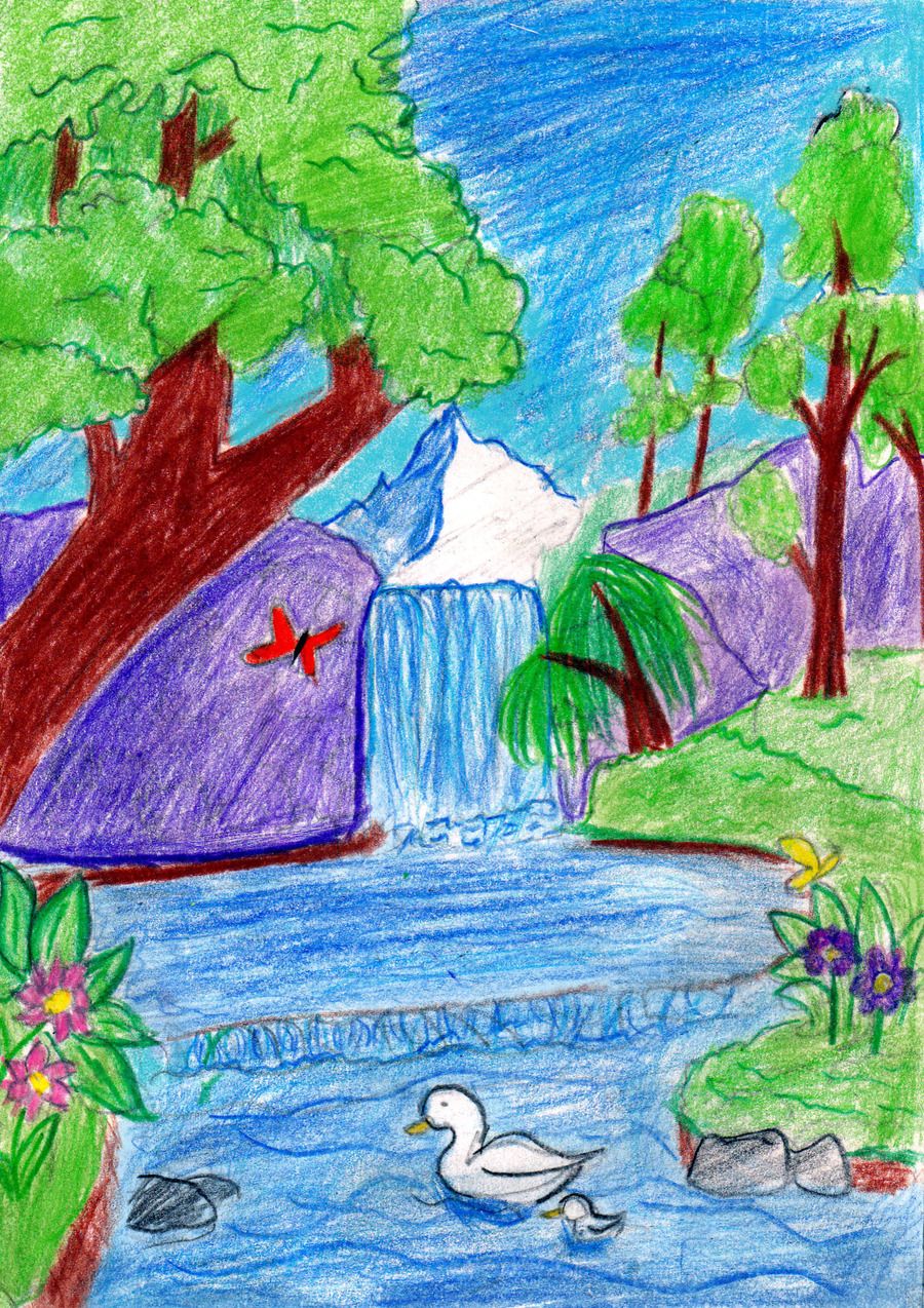 वनको शान्ति, खोला र झरना