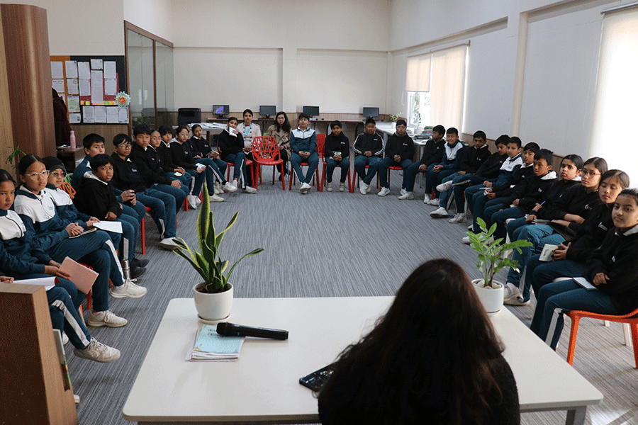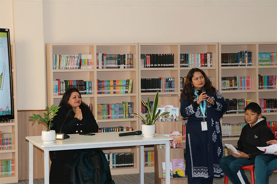 आज कक्षा ६ का विद्यार्थीहरूले अतिरिक्त पुस्तक “कान्छु” अध्ययन पश्चात्, बाल साहित्यकार यमुना पराजुली अधिकारीसँग अन्तरक्रिया कार्यक्रम सम्पन्न गरे। विद्यार्थीहरूले पुस्तकका पात्रहरू, घटनाक्रम, र निहित संदेशहरूबारे लेखकसँग गहन छलफल गरे। यस संवादले उनीहरूको सृजनात्मक सोचलाई उजागर गर्दै साहित्यिक दृष्टिकोणबाट पुस्तकलाई गहिरो रूपमा बुझ्न प्रेरणा प्रदान गर्यो।