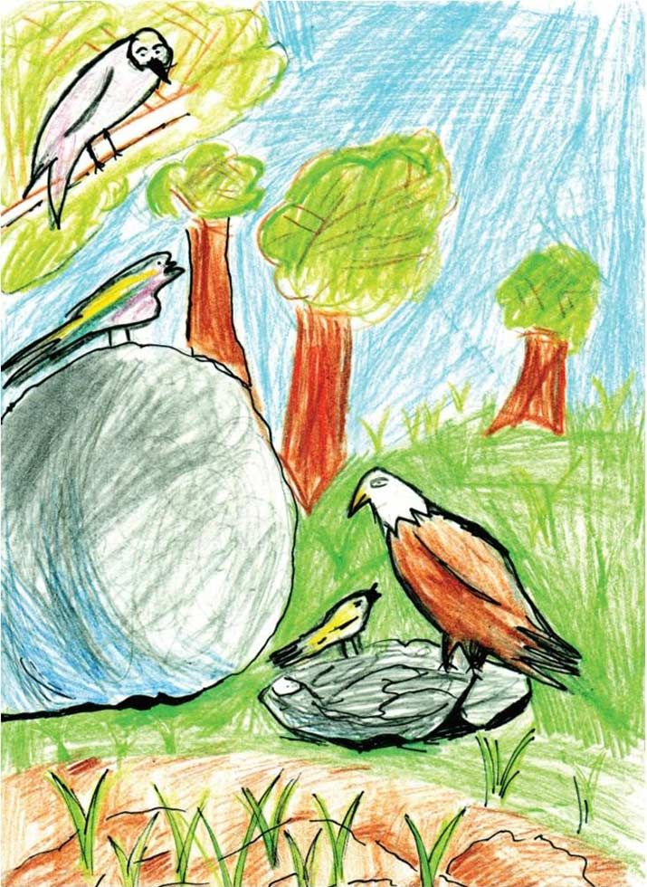 चितवनको कुनै गाउँमा एउटा बाक्लो जङ्गलमा थियो । त्यहाँ चरा र जनावरहरु मिलेर बस्थे । एक पटक चराहरुको समूहले आफ्नो समूहमा एउटा राजा हुनुपर्ने कुरामा छलफल गरे । राजा छान्ने कुरामा सबै चराहरुको सहमत भयो तर राजा को हुने भन्ने विषयमा भने सहमत हुन सकेनन् किनभने सबैजसो चराहरु आफैँ राजा हुन चाहन्थे ।
