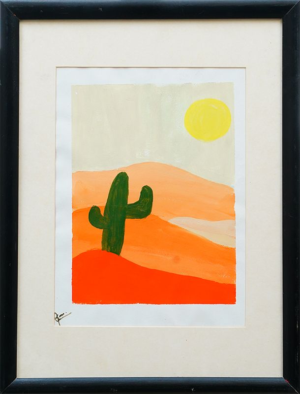 In this painting, I was looking through my old sketches when I saw this painting that I did in 2022 and I did it again but better. This painting has a cactus which is in a grunch green color.