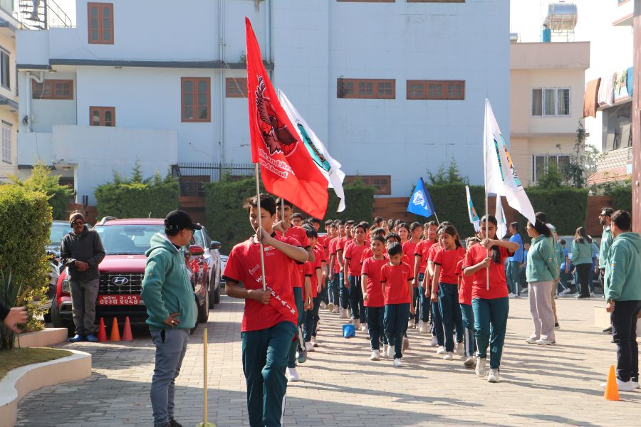 The ceremony began with march pasts by Elementary, Middle, and Secondary students, followed by the National Anthem, oath-taking ceremony, and a graceful lighting of the ceremonial lamp by our respected Chairman, Chief Guest, Principal, and Vice Principal.